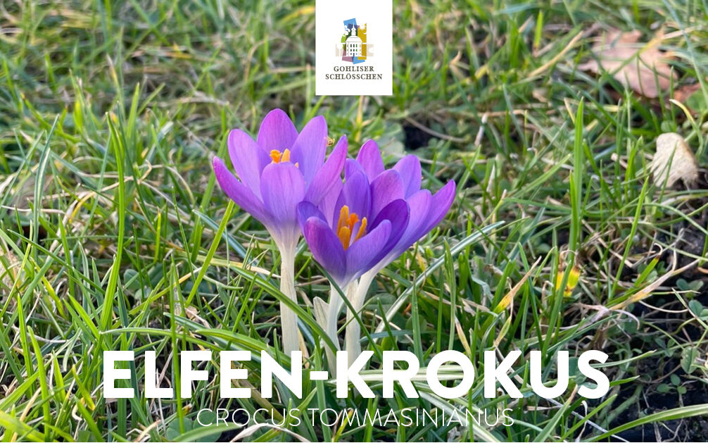 Mit seiner satt violetten Blüte ist der Elfen-Krokus ein Vorbote des nahenden Frühlings. Er wächst auch in unserem herrlichen Barockgarten am Gohliser Schlösschen. Aufgrund seiner frühen Blütezeit gilt der Krokus als wichtige Futterpflanze für Bienen und Hummeln, die vor allem die eiweißreichen Pollen sammeln. Die Blüten öffnen sich nur bei gutem Wetter und geben den Blick auf die intensiv orange leuchtenden Staubfäden frei.