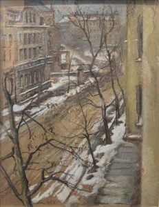 - Rolf Huhn – „Leipzig bei Tauwetter“, Gouache, 56 x 43 cm, 1952